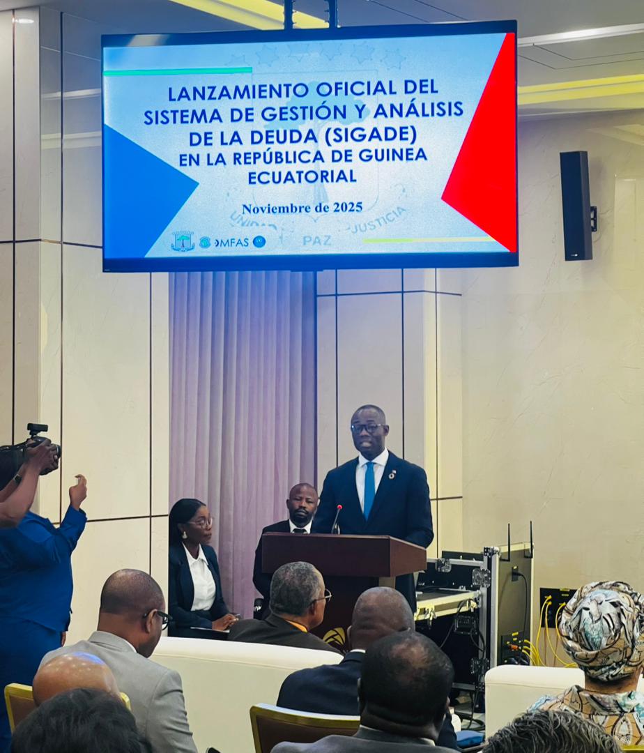 Este viernes 21 de noviembre del año en curso, la Caja Autónoma de Amortización de la Deuda Pública, (CAADP), dirigida por Rubén Edjang Bibang Oyana, celebró el lanzamiento oficial del Sistema de Gestión y Análisis de la Deuda (SIGADE) en la República de Guinea Ecuatorial. El acto fue presidido por la Ministra Delegada de la Tesorería y Patrimonio del Estado Milagrosa Obono Angüe Nchama, quien resaltó la importancia de la herramienta, como un avance estratégico para una gestión moderna y transparente del endeudamiento en el país.